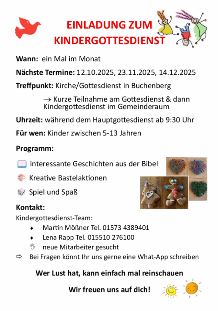 Der Kirchendienst betrifft die Dorfkirche Buchenberg und die Nikolauskirche.